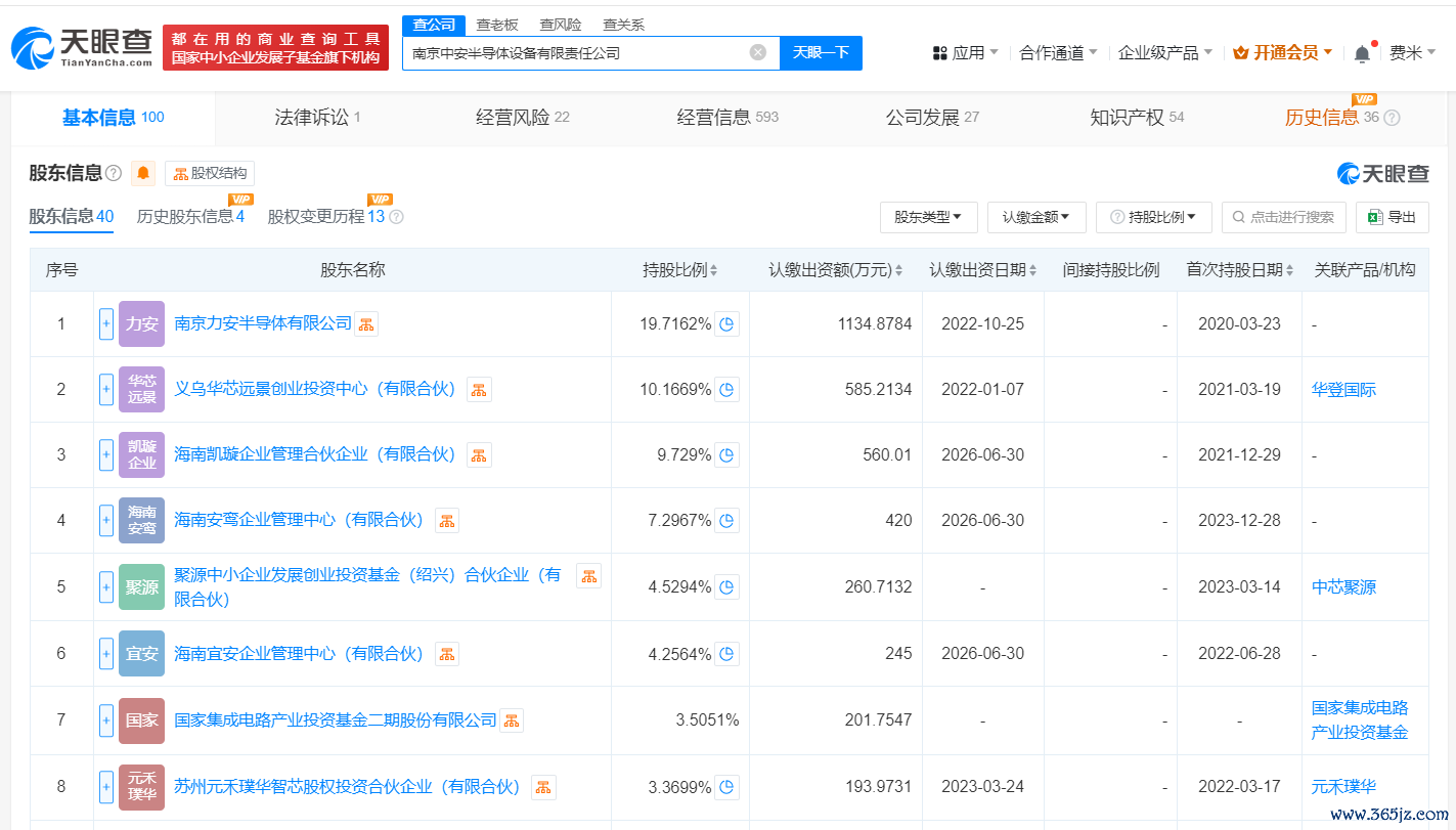 南京中安半导体设备有限责任公司成立于2020年3月,法定代表人为陈俊,经营范围含电子测量仪器制造、实验分析仪器制造、电子元器件与机电组件设备制造等配资平台APP下载,现由南京力安半导体有限公司、义乌华芯远景创业投资中心(有限合伙)及上述新增股东等共同持股。